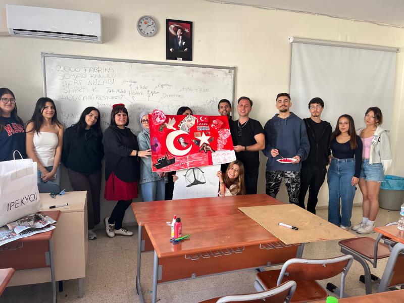 28 Ekim 2025 tarihinde Grafik Tasarımı Programı 1. Sınıf öğrencileri 29 Ekim Cumhuriyet Bayramı için kolaj çalışması hazırlamışlardır. Kolaj tasarımı için önce tüm sınıf öğrencileri ile "Cumhuriyet" sözcüğü üzerinden beyin fırtınası yapılmıştır. Daha sonra beyin fırtınasından edindikleri fikirleri, 70-100 cm ölçülerinde kâğıt üzerinde, geri dönüştürülebilir malzemelerden kolaj tasarımı olarak yansıtmışlardır. Öğrencilerimiz grup çalışması yaparak işbirlikli öğrenme yöntemiyle çalışmış, yaratıcı bir ürün ortaya koymuşlardır.